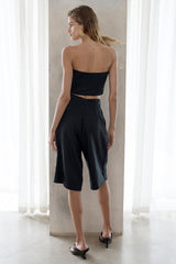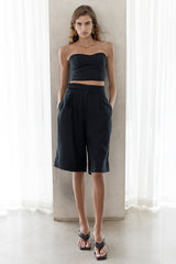 A sophisticated summer staple, these shorts have a Bermuda-style silhouette in sharp black for a classic yet effortlessly cool feel. They're cut from lightweight linen and feature a single button on the right high-rise waist. Wear yours with the matching Bustier and loafers.