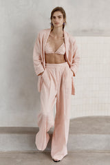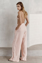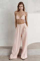 A new season take on our most loved triangle tie-top, this light pink piece brings a feminine touch to your warm weather essentials. Crafted from the softest linen, it features a classic triangle cut with soft ruching, and thin straps that highlight the shoulder line and tie at the mid back. Designed to wear as a set with the matching Blazer and Tailored Trouser.