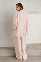 Soft pleating gently accentuates this classic wide leg pant easily suited to office and off duty style. Designed to sit at the hips and with an intentionally oversized cut, the Blush Tailored Pant is a timeless addition to any wardrobe. Features traditional zipper and single, off-centre button fastening. Looks especially chic with the matching Blush Blazer.