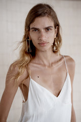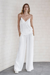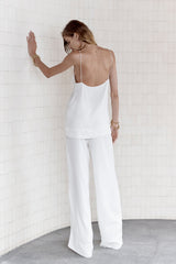 Collection 02 continues with clean, contemporary wardrobe essentials. These pants are intentionally relaxed with a polished pyjama feel suited to lounging, work meetings or a balmy long lunch. Falling from a thin, elasticised waistband, the nature of the fabric means it drapes so effortlessly through the wide legs, and pockets keep the fit functional. Designed to wear with the matching camisole, they mix and match just as well.