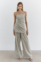 Collection 02 continues with clean, polished wardrobe essentials. These pants are tailored from soft Dove Grey cotton that's softly pleated from the high-rise waistband. Designed for an oversized finish, they drape so effortlessly through the wide legs, and pockets keep the fit functional. Designed to wear with the matching Ruched Top, they mix and match just as well.